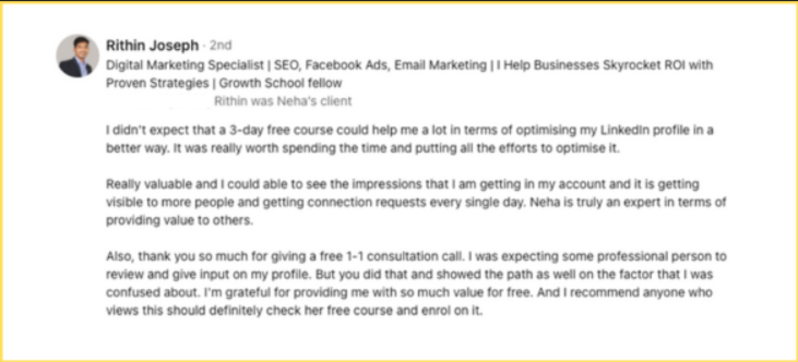 Then I got to know about LinkedIn. I started working on my LinkedIn Personal Branding, and you know what? It worked like magic!